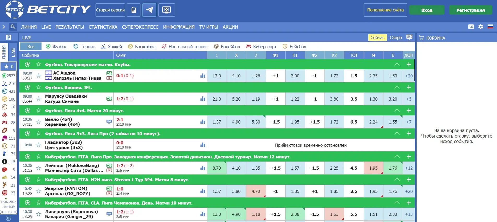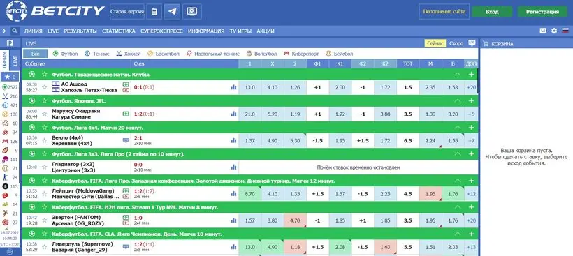 Зарегистрированные игроки БК Бет сити могут оформлять ординары, экспрессы и системы.