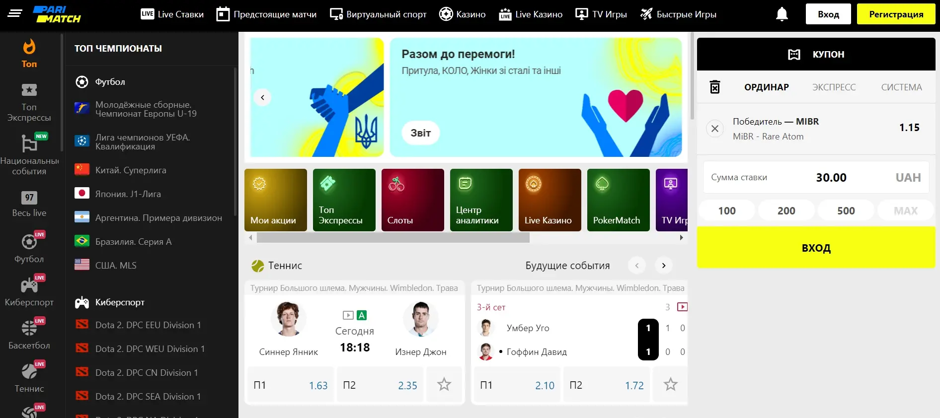 Париматч - ставки на киберспорт в Украине